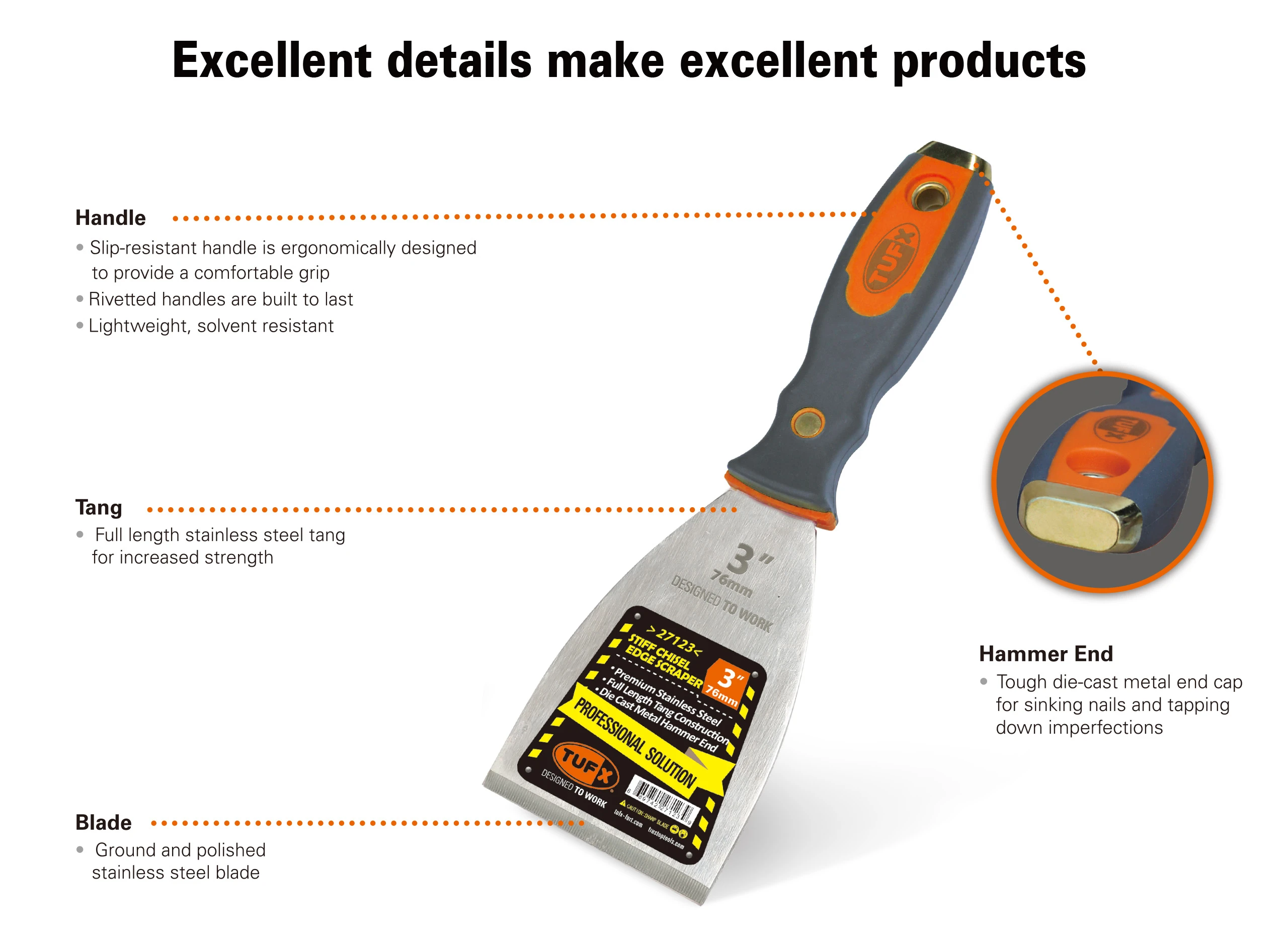 For DrywallOur joint knives are perfect for spreading joint compounds smoothly over nails and seams to ensure a seamless and solid drywall finish.Versatile ScrapersDesigned not just for scraping old paint or silicone, our scrapers with stiff blades and hammer ends offer versatility for chiseling and minor demolition tasks, making them indispensable in renovation projects.